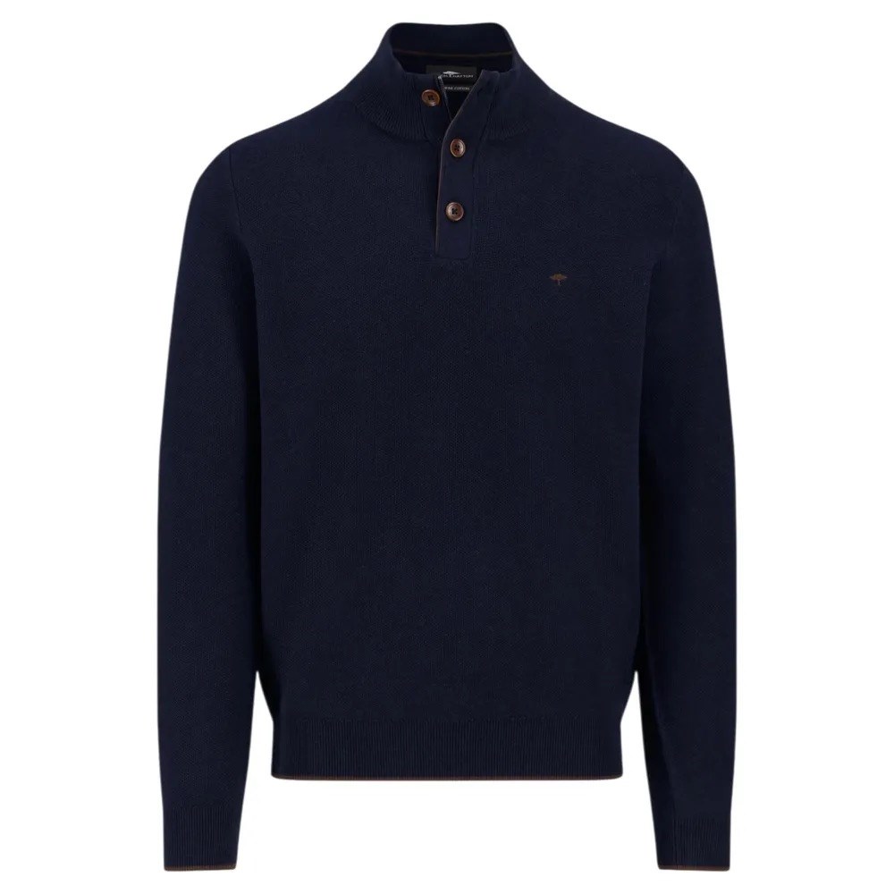 Ворот стойка на контрастных пуговицах и тонкая ребристая текстура придают этому свитеру вневременную элегантность со спортивным оттенком. Контрастная отделка на воротнике, манжетах и ​​подоле добавляет тонкие акценты и подчеркивает изысканный вид.