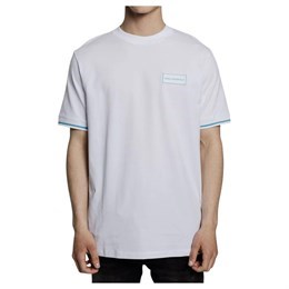 3D-принт с логотипом на груди. Круглый вязанный воротник. Контрастная цветная полоска на манжетах.
