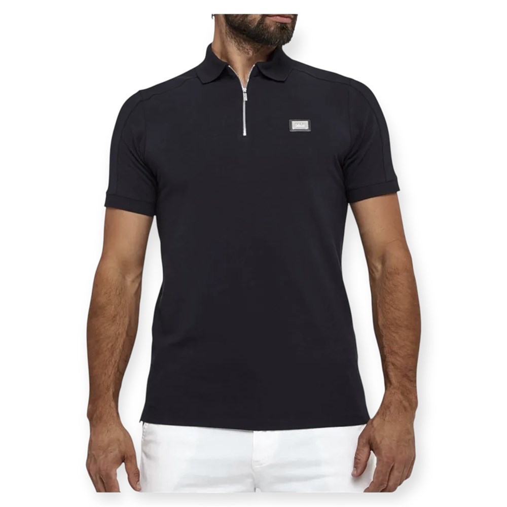 Поло с коротким рукавам из коллекции бренда Karl Lagerfeld. Металлический логотип KARL LAGERFELD спереди на груди. Отложной воротник с металлической молнией.